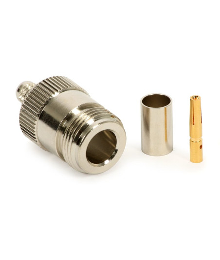 Dobrej jakości złącze (wtyk) typu N (żeńskie) CRIMP'owane (zaciskane) na przewód RF240/TriLan240/H155.